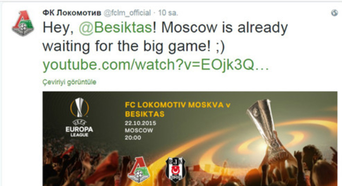 UEFA Avrupa Ligi H Grubu'nda Beşiktaş ile karşılaşacak olan Lokomotiv Moskova, maç öncesi hazırladığı özel klibi yayınlayarak Twitter hesabı üzerinden Beşiktaş'a mesaj gönderdi.