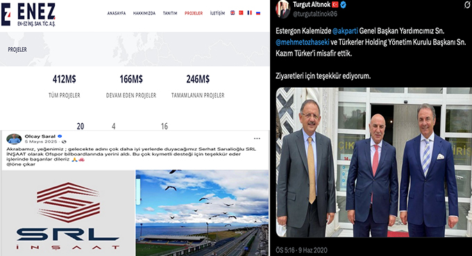 Türkerler İnşaat: Ankara merkezli şirketin sahibi Kazım Türker. 2007 yılı Ankara vergi rekortmeni sıfatını da taşıyan Türker, o dönem kendisiyle yapılan bir söyleşide “AKP dönemi zengini değilim” açıklamasını yapmıştı. Türker, AKP’nin emlak zengini olduğu ortaya çıkan Ankara Büyükşehir Belediye Başkan Adayı Turgut Altınok ile dönemin AKP Genel Başkan Yardımcısı Mehmet Özhaseki tarafından Ankara’daki Estergon Kalesi Türk Kültür Merkezi’nde 2020 yılında misafir edilmiş.